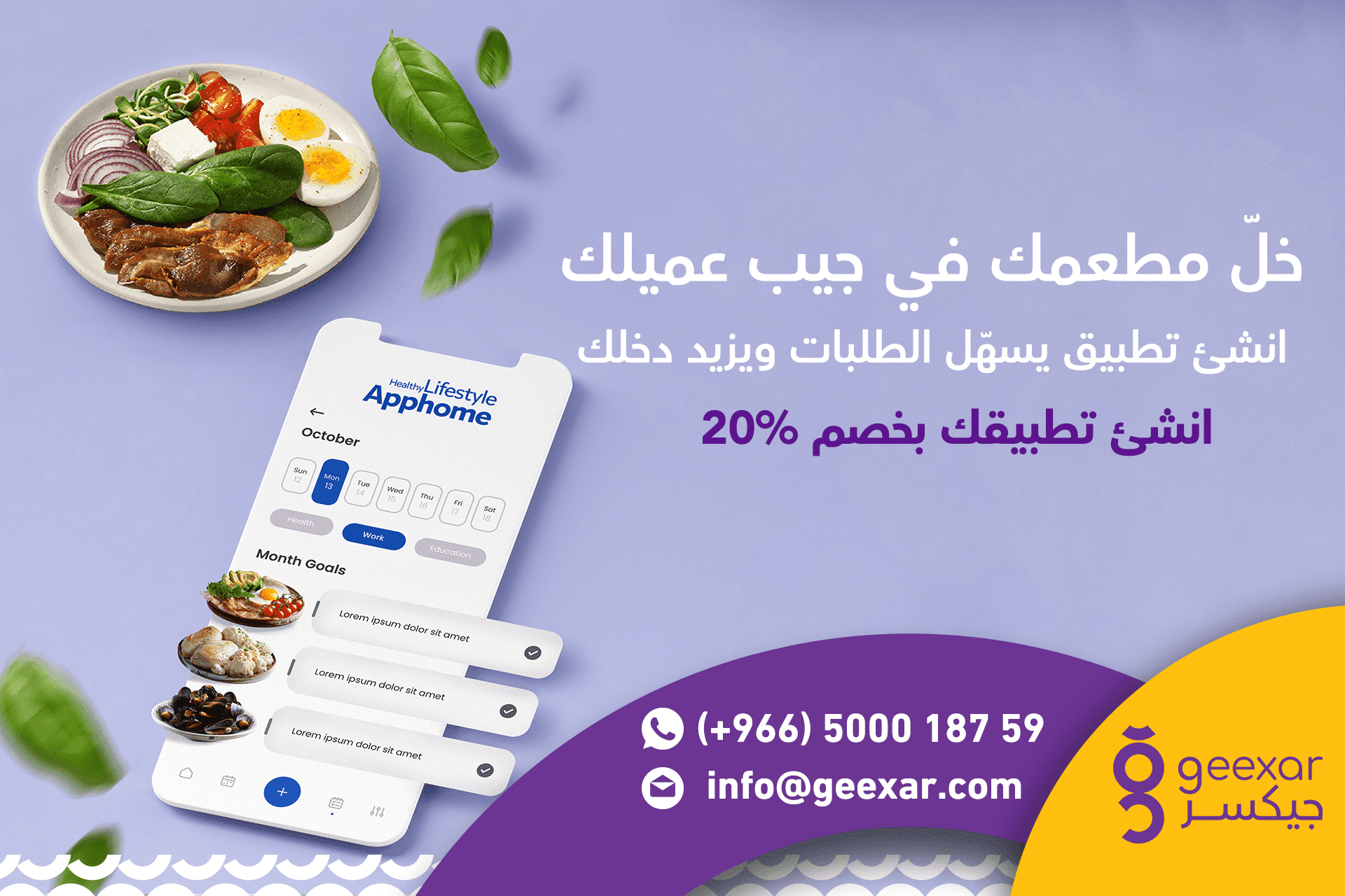 خل فريقنا بجيكسر يساعدك بخطة احترافية تناسب مطعمك ب إنشاء تطبيق مطعم احترافي تواصل معنا الآن واطلب خدمة انشاء تطبيق مطعم وابدأ تجربتك الرقمية اليوم