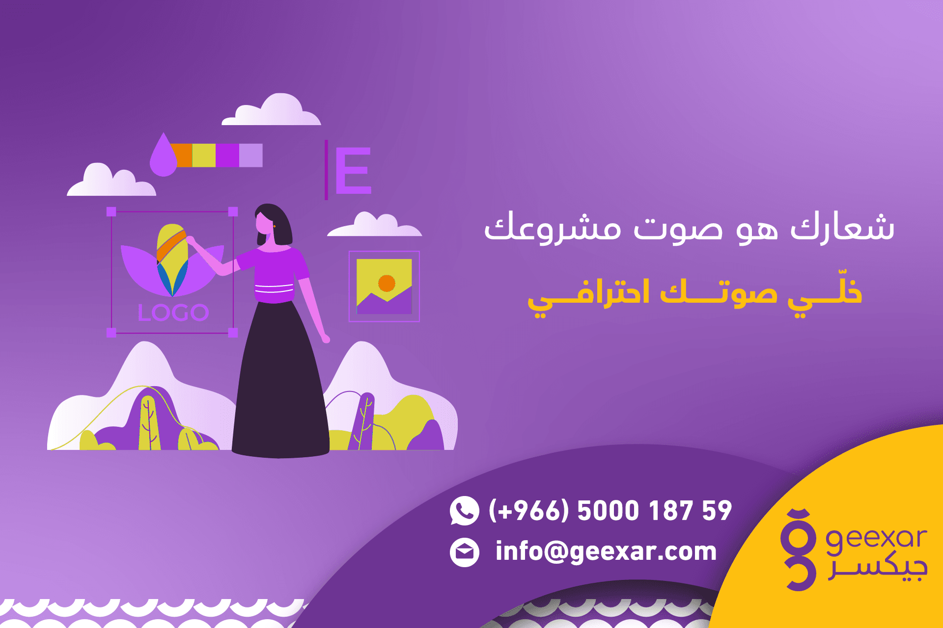 ويمكنك التواصل مع شركة جيكسر لانشاء لوقو عربي يدمج بين الأصالة والحداثة من خلال موقع التواصل الاجتماعي الواتساب.