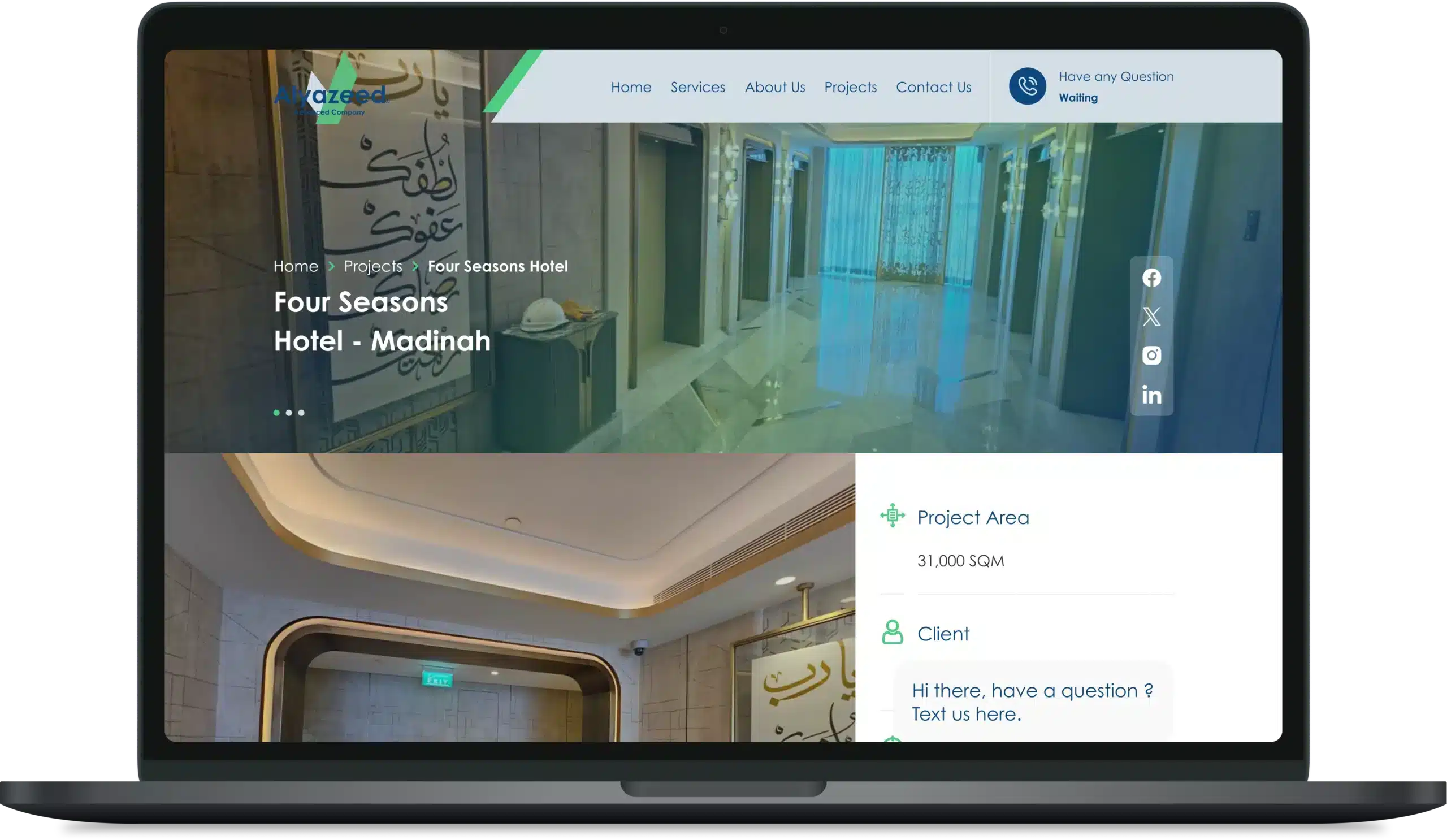 We developed the official website for Alyazeed Advanced Company, a construction and interior finishing company that offers luxurious solutions in construction, design, project management, and space furnishing.